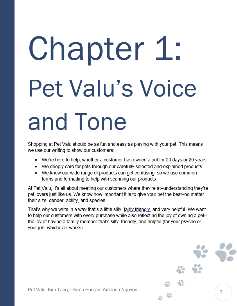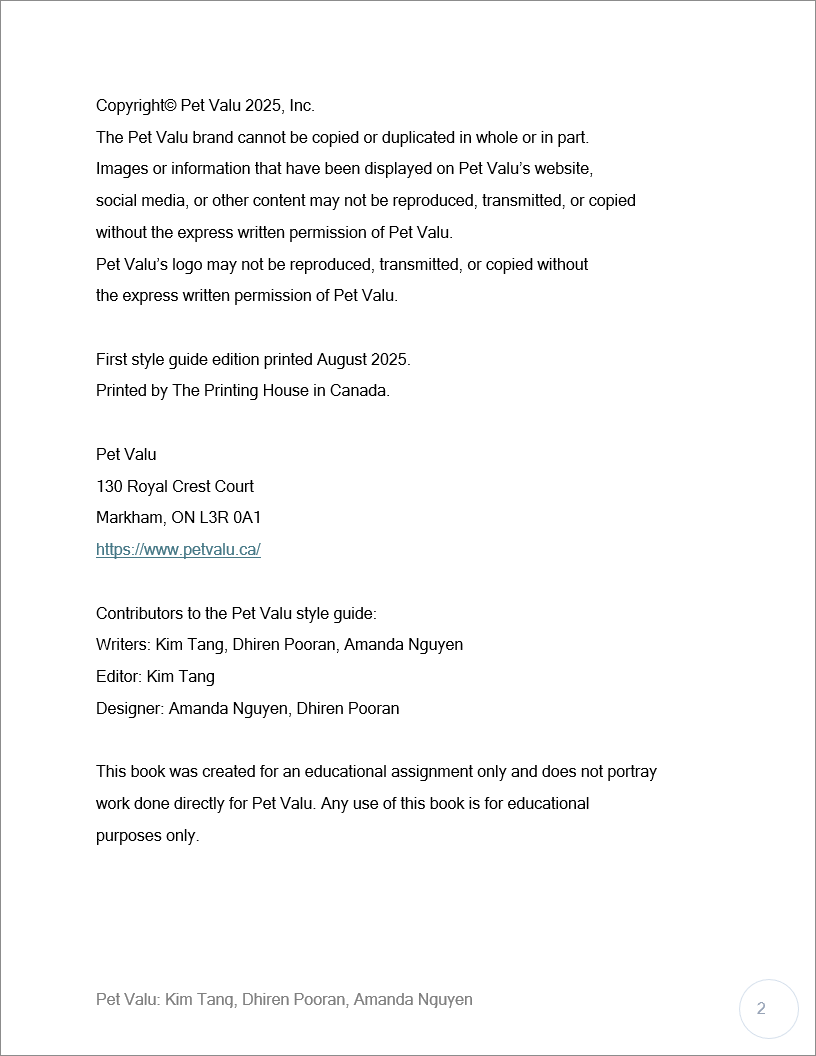 Pet Valu™ style guide cover page by Amanda Nguyen.